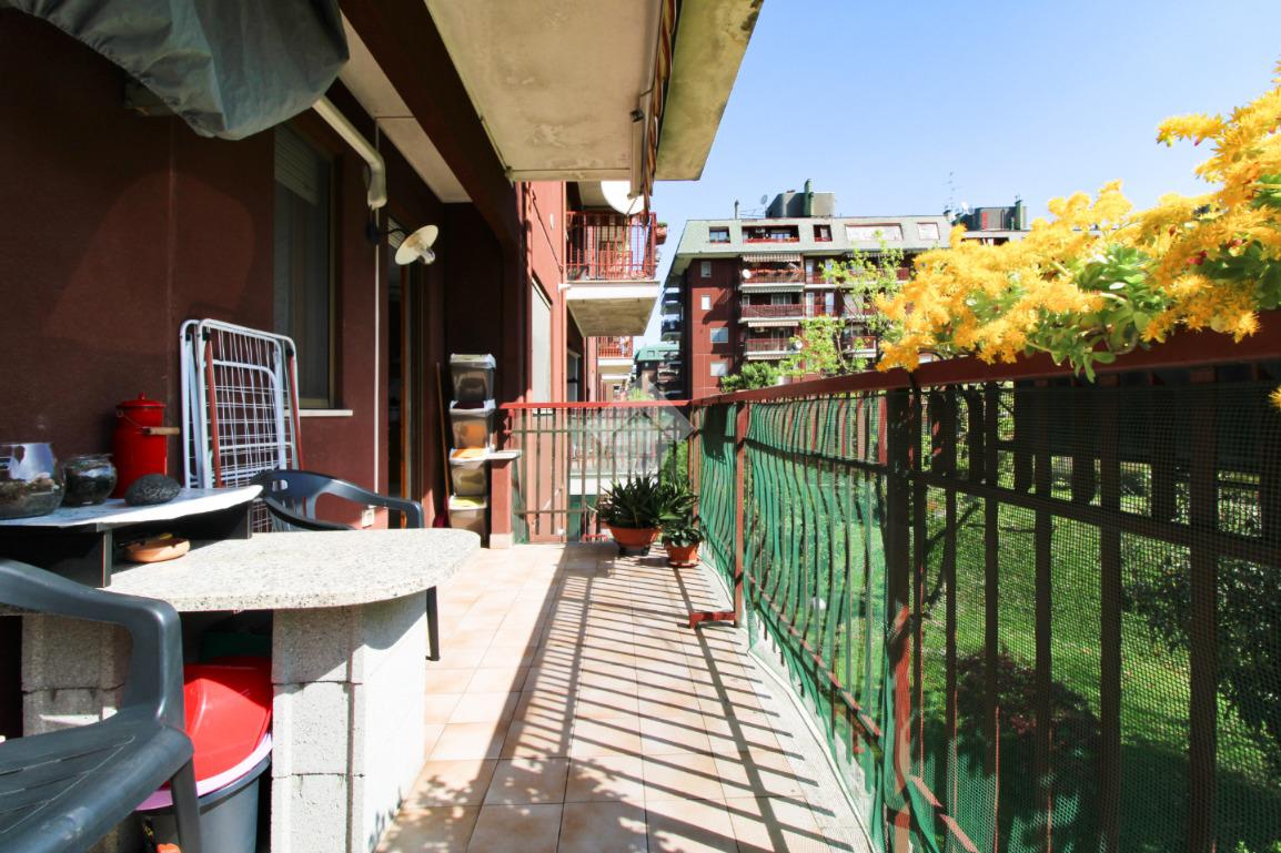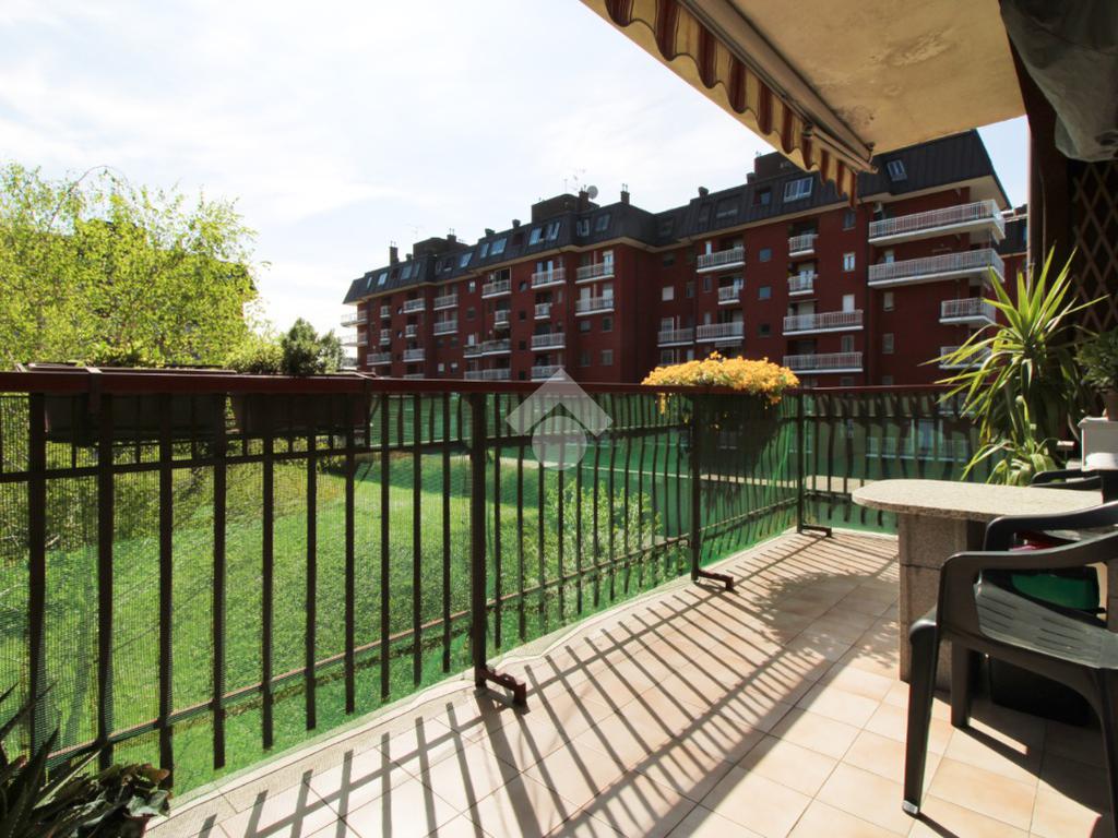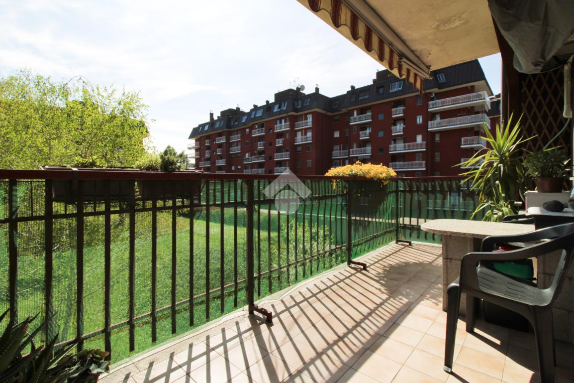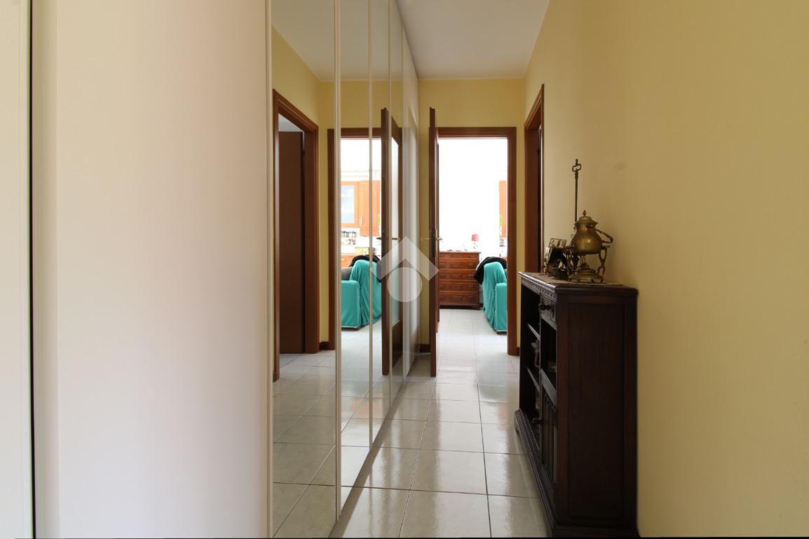 Residenze La Grande, appartamento di tre locali posto al secondo piano composto da soggiorno con cucina a vista e balcone che affaccia all'interno del giardino condominiale, bagno finestrato, camera matrimoniale e cameretta.